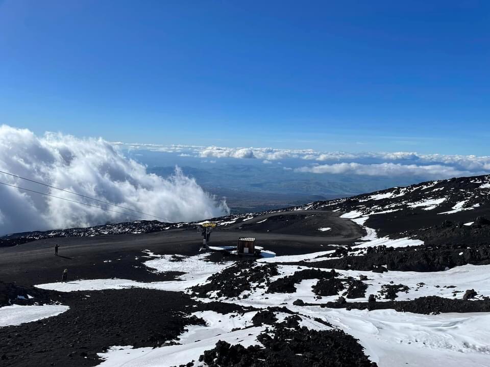 We had a coffee at the top before heading down the cable car for some lunch. We had a self-service restaurant lunch, which was definitely a mistake, people pushing, immensely noisy and mediocre food. We were happy to retire to the sanctuary of our motorhome. The cloud has cleared to the west again now as I write and Catania has appeared out of the mist. The cloud seems to be a land / air temperature phenomena as there was hardly any cloud yesterday except that round Etna, but from the webcams it appeared to clear in the evening, just as it did first thing this morning. So we are hoping for some lovely sunset and sunrise photos from our perch on the mountain side tonight.