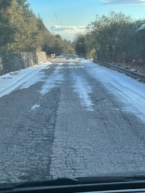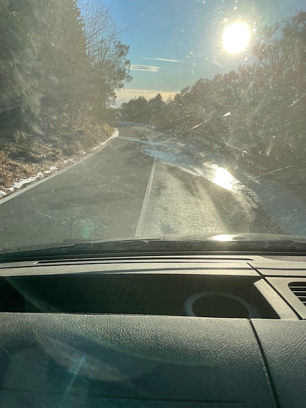 So we had an early breakfast alongside our German neighbours. Like us, he was outside taking photos, she was inside with a coffee hanging out the windows. we were out on the road heading to the coast before 8 am. The road down was covered in frost and black ice ❄️ we took it very steady heading down. We were probably most worried about the local drivers coming up, who appeared not to slow down at all.