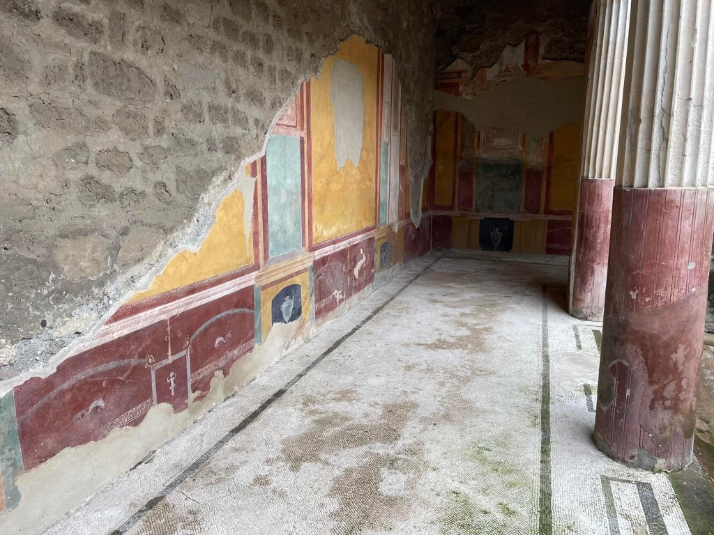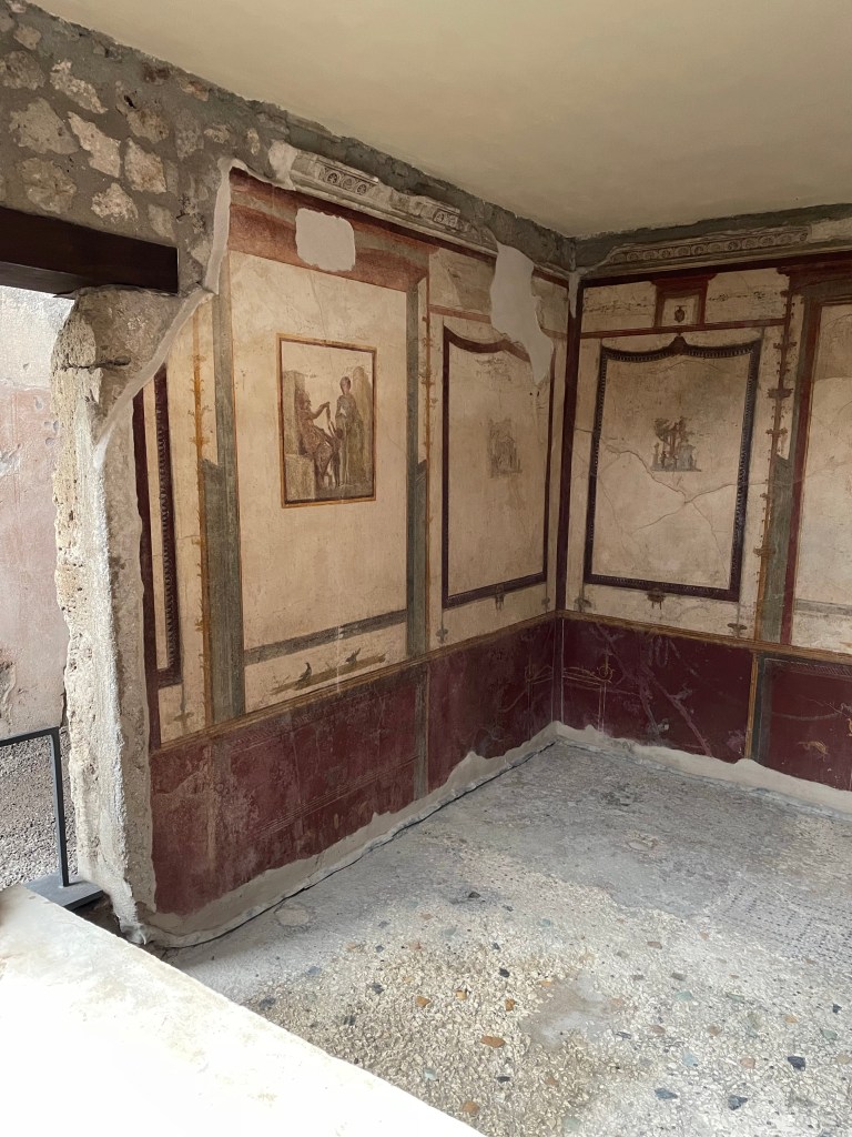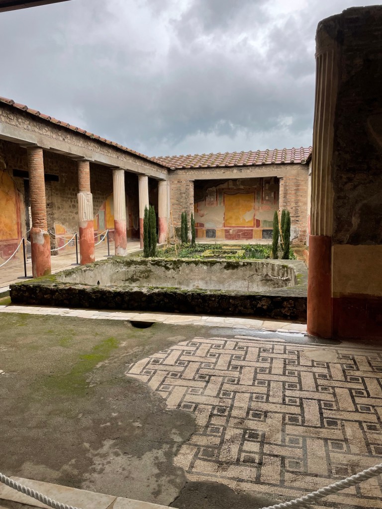 Probably the highlight of today‘s visit was the villa which was only opened to the public on Christmas Eve 2022 after 20 years of restoration work. Sadly, the exposure of the Pompeii site is also leading to its gradual decay as the structures which were buried in over 50ft of ash and pumice in 79 AD is exposed to the elements again in the last 200 years. However, the villa we saw today, the fresco painting, mosaic floors were so fresh, bright and vivid. You can really see the opulence of the lifestyle the Romans led. Maybe that is why we love to visit these sights so much, you really do leave them thinking that they really had it right (well perhaps except for the slavery 😳) and we have gone backwards as a society since.