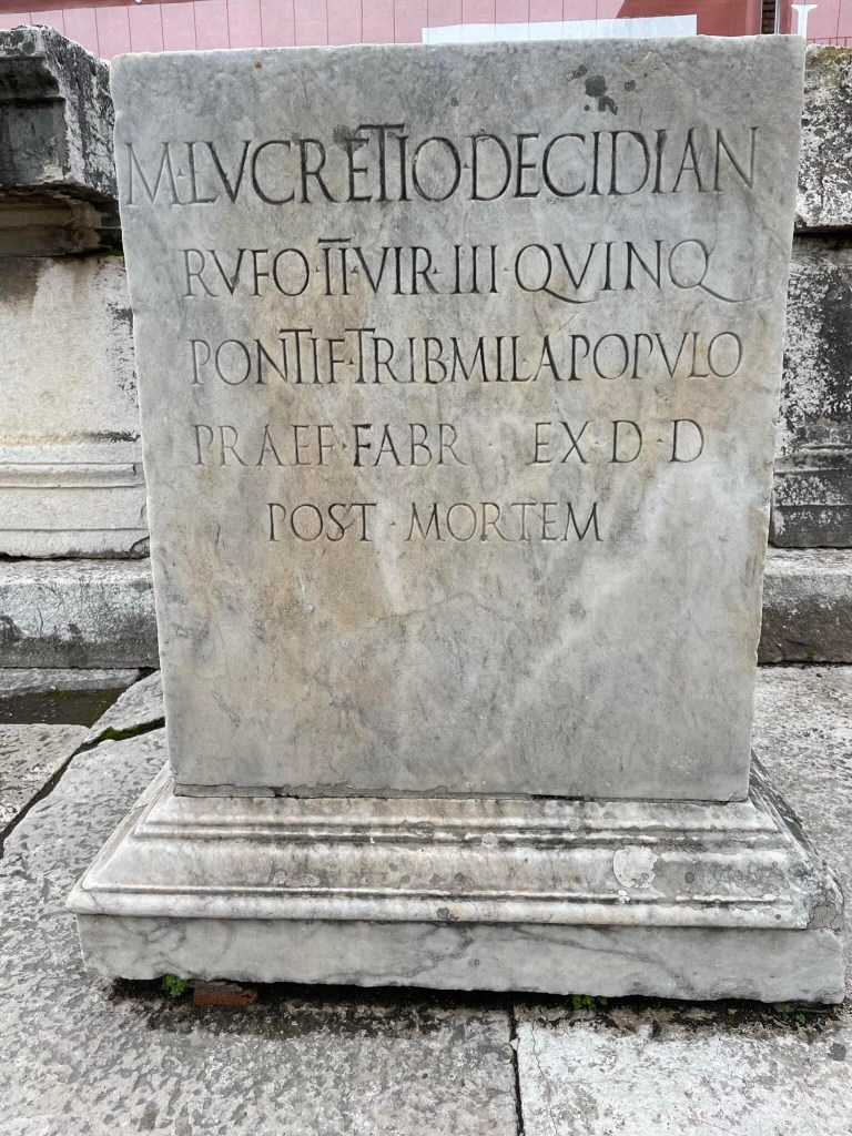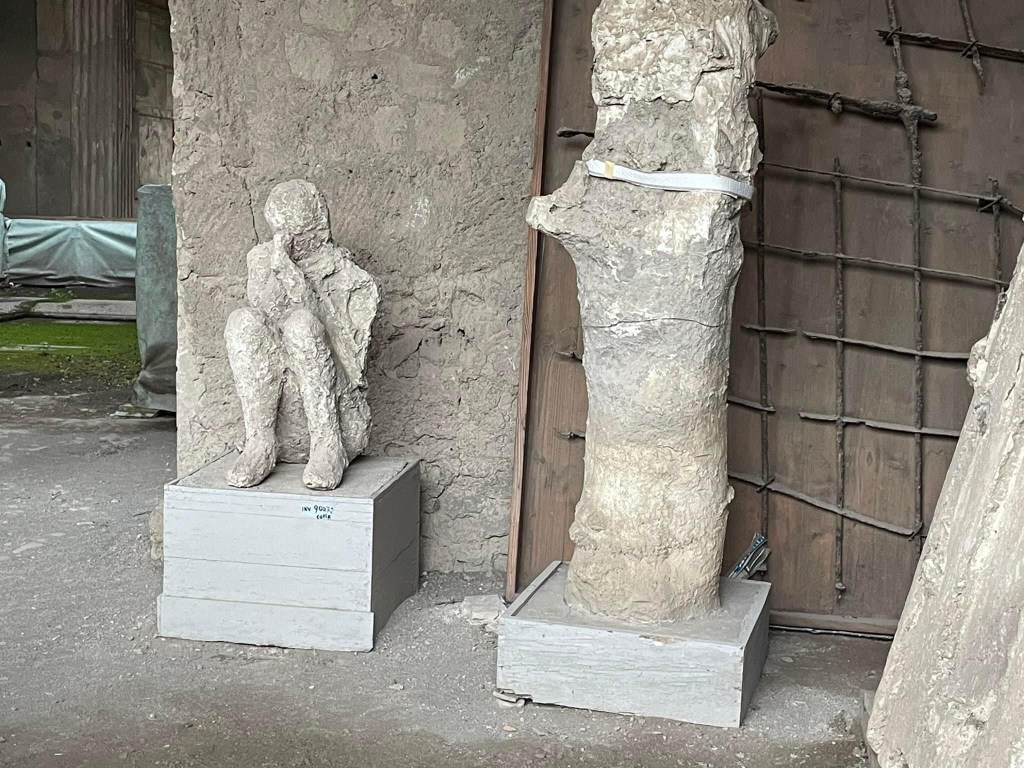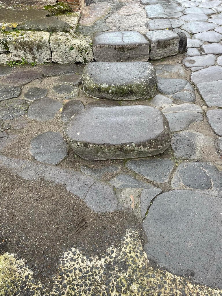 It is not a city which was entirely captured by the eruption in a single moment as some marketing would suggest, there had been an eruption 17 years earlier, so some temples were not completely restored when the eruption occurred. There was also seismic tremors in the days preceding leading to some evacuations. There was also 200 bombs dropped by the allies on the site during WW2. However, the restoration work is really impressive, seamless in terms of materials and style but also labelled – by for example a thin line of red brick or a plaque. However, it is nonetheless the most exceptionally preserved Roman site we have ever visited. It has suffered none of later remodelling / material theft of later populations. Although apparently the King of Naples who funded the earliest excavations did steal some travertine for his palace 🙄😫