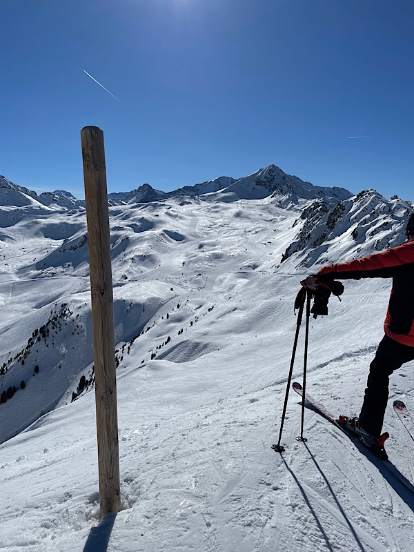 The majority of the runs in Les Arcs are intermediate blue runs and Arc 1600, which we reach on the funicular is joined by lifts to the three other resorts of Les Arcs at 1800, 1950 and 2000, plus several others at La Plagne and beyond. We are here for two weeks and it is clear we have lots to explore. We expected to stay pretty local in 1600 and take a steady start to our skiing. However, we then meet Jean-Christophe โJCโ our instructor at 12 and for the next two hours he pushes that comfort zone of ours right out of shape and he whips us right up to Arc 2000 to the most fabulous views via two lifts then across the valley on a third lift and back down to Arc 1600 two hours later, hot, sweaty, but exhilarated having made a week of progress in that time compared to what we would have done on our own.