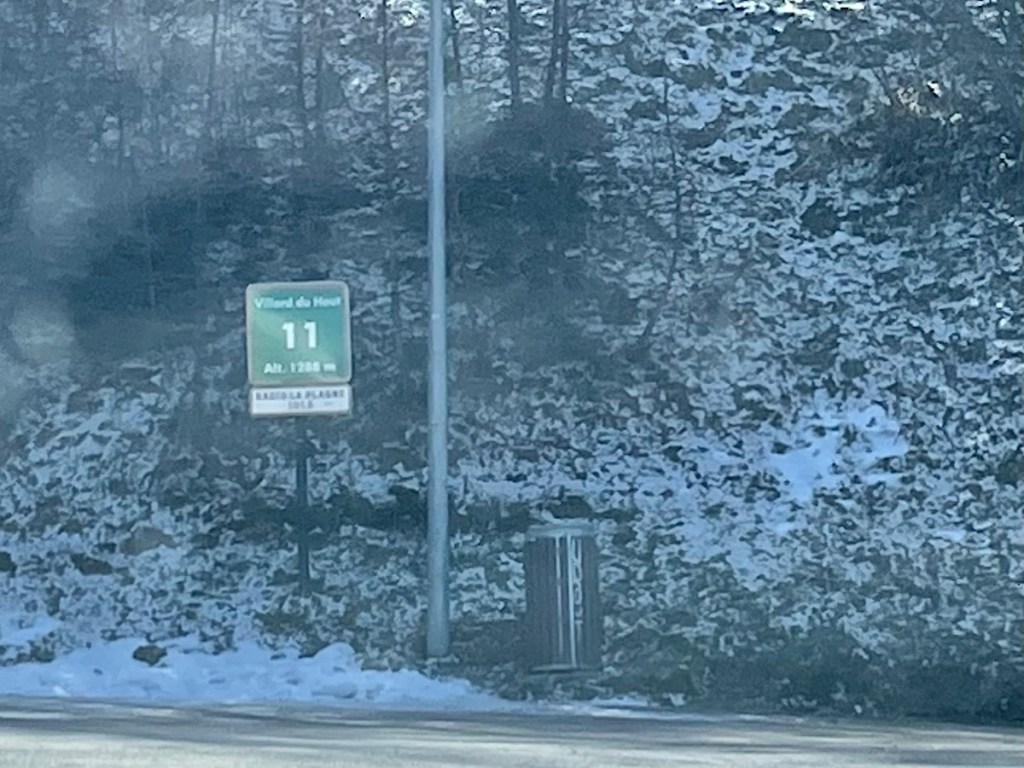 We then drove a massive 30km along the valley and up the mountain to the neighbouring resort of La Plagne, counting down the numbered 21 hairpin bends on the way. We watched the altitude increase and the snow start to appear on the roadsides. We passed the Olympic Bobsleigh run (which we will certainly not be attempting!!), and some of the lower resorts before we arrived at 2050m our highest ever park up. The local authority have kindly installed a motorhome Aire with 16A electric, literally at the side of the ski slope for ski-in, ski-out access.