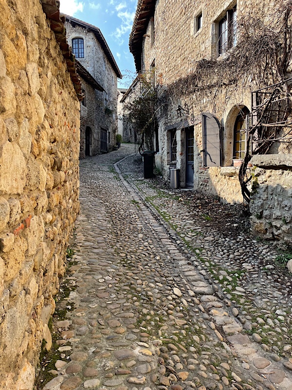 Our first stop, about 200km away was one of the beau-village of France in a medieval of Pérouges. The change of landscape seemed to happen rapidly from the snow capped mountainous Alps to the green rolling hills as we headed west. We skirted Lyon, not really in the mood for a city stop after so long in the fabulous countryside of the the Alps. Pérouges turned out to be the perfect alternative. Although referred to as a cité, it is actually a small walled village, where apparently craftsmen once congregated being on the main route between Lyon and Geneva.