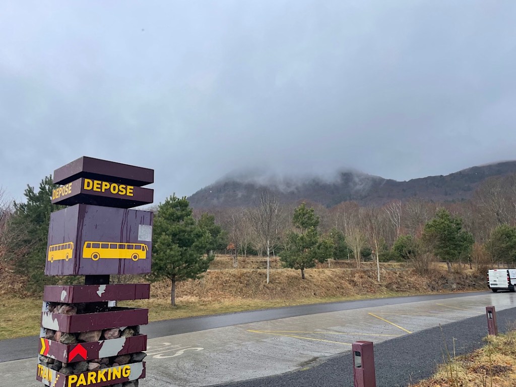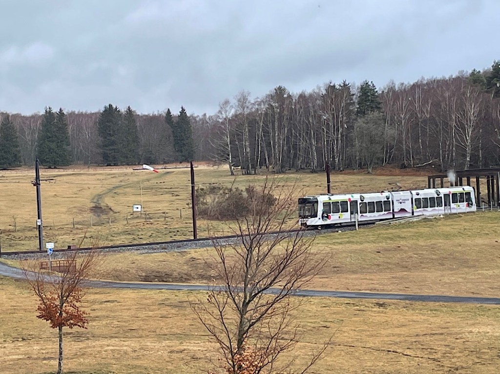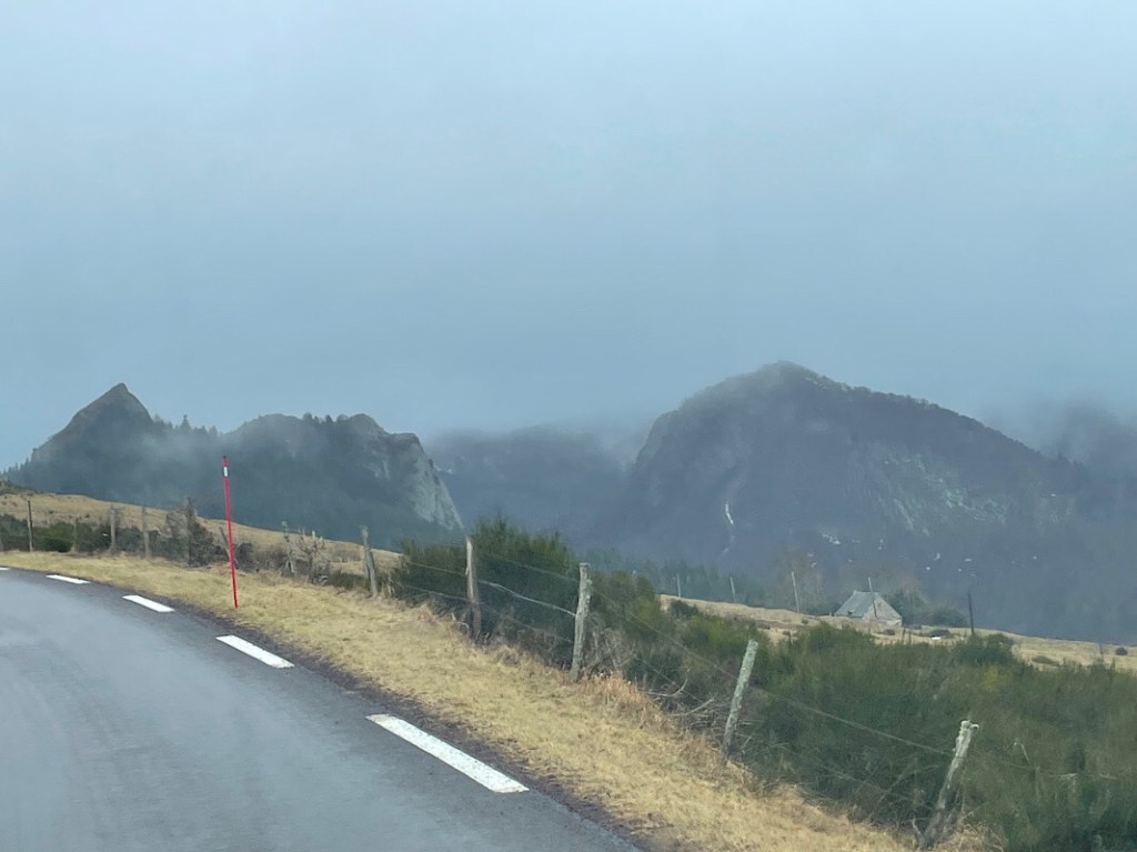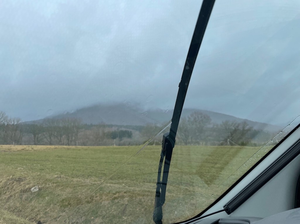 Our plan this morning was to visit Puy de Dôme, a lava dome in the Chaîne de Puys volcanoes, the youngest volcano in the Massif Central region, formed 10,700 years ago. The Puy de Dôme is the highest point in a chain of 48 volcanoes / cinder cones / lava domes / mars and explosion craters stretching out over 25 miles. It receives over 500k vistitors a year and a dedicated train line has been installed to transport visitors to the top to see the views over the Chaîne de Puys.
