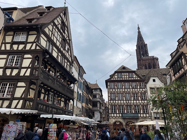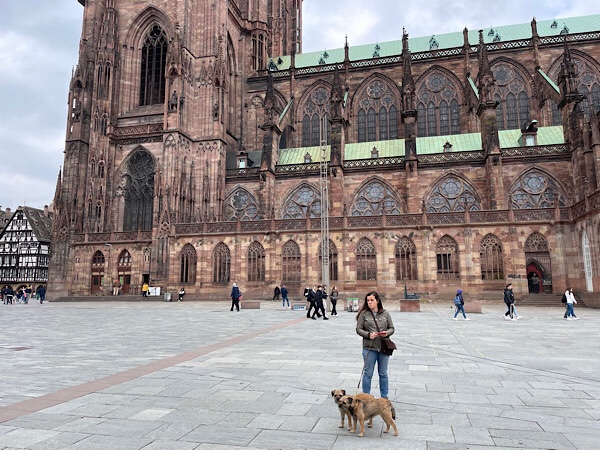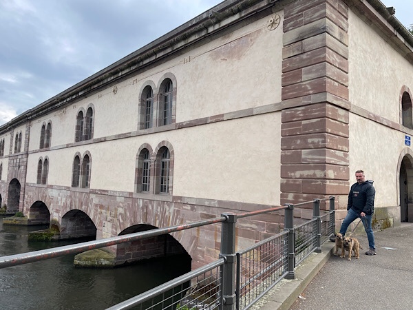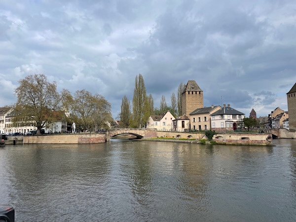 A final dog walk along the river at Colmar before a short hop up the road to Strasbourg. We were literally running along the Alsace wine route with the Vosges mountains in the distance, but felt we had enough wine stocks after so long around Bordeaux. The Alsace region has passed back and forth between Germany and France over the last two centuries and the very German sounding place names definitely feel much more German than French.