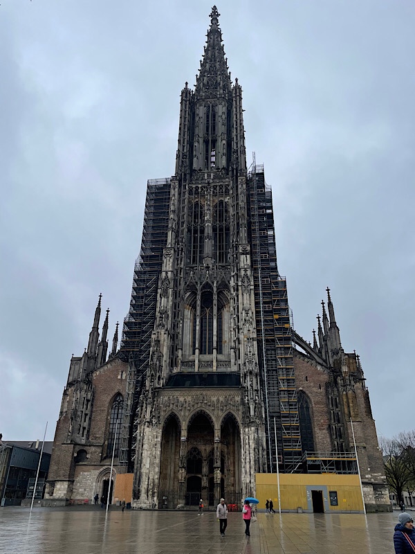 The old town of Ulm is cross-crossed with canals, more half-timbered houses and dominated by the the central Münsterplatz and Ulmer Münster church, unfortunately partially shrouded in scaffold. Imagine having to put up that scaffold!