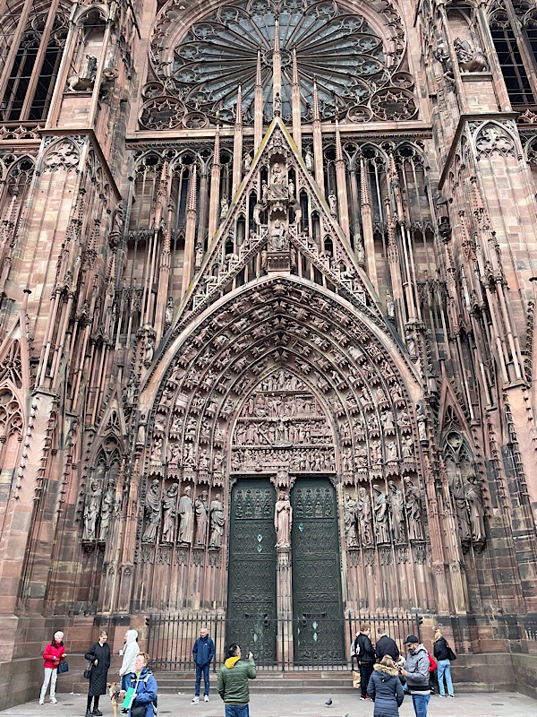 The next day, we decided to give Strasbourg a better chance and headed to the very impressive and imposing Cathedral and back through some of the older streets of Petite France. The colourful half timbered houses of the region and river side location made a much better impression away from the worst of the crowds. We also managed to try some of the tarte flambée for lunch which everyone had been eating the night before. Large very thin pizza-like flat breads using crème fraîche, onions and lardons as a base (bacon bits or veggie version without) instead of tomato purée, topped with cheese and mushrooms. They were really tasty, you kind of roll up the slices to eat them, people were even eating a sweet version of desert.