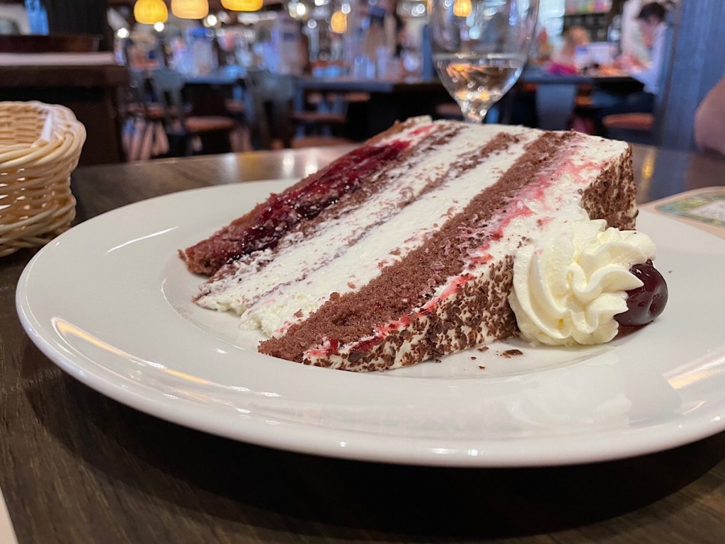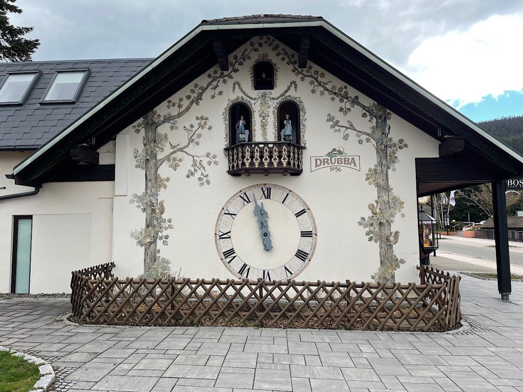 The town turned out to be touristy and unremarkable with bus loads of Chinese visitors and expensive jewellery, tat shops and delicatessens. Cuckoo clocks appeared to be the main specialty, including a large clock built into the gable end of a jewellery store we arrived to see chime coincidentally, 2 minutes to midday. We did at least get to share a slice of local Black Forest Gateaux, which I can confirm tastes nothing at all like the classic English synthetic cream, frozen variety. However, the Black Forest was not black and we did not see any titi 😂.