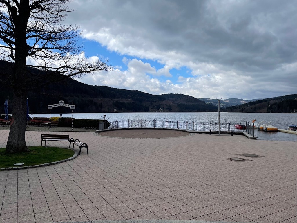 When we left the Krug off-road weekend, we were given several recommendations to visit Titisee, a lake in the southern Black-Forest. So we thought we ought to pass that way based on the many suggestions received and not just because we were tittering childishly at the name 😂. We pulled in just before lunch in the large motorhome parking area by the station, though we were a little suspicious about its popularity when an attendant appeared out of nowhere and helped me to reach the ticket from the entry barrier in the near empty car park.