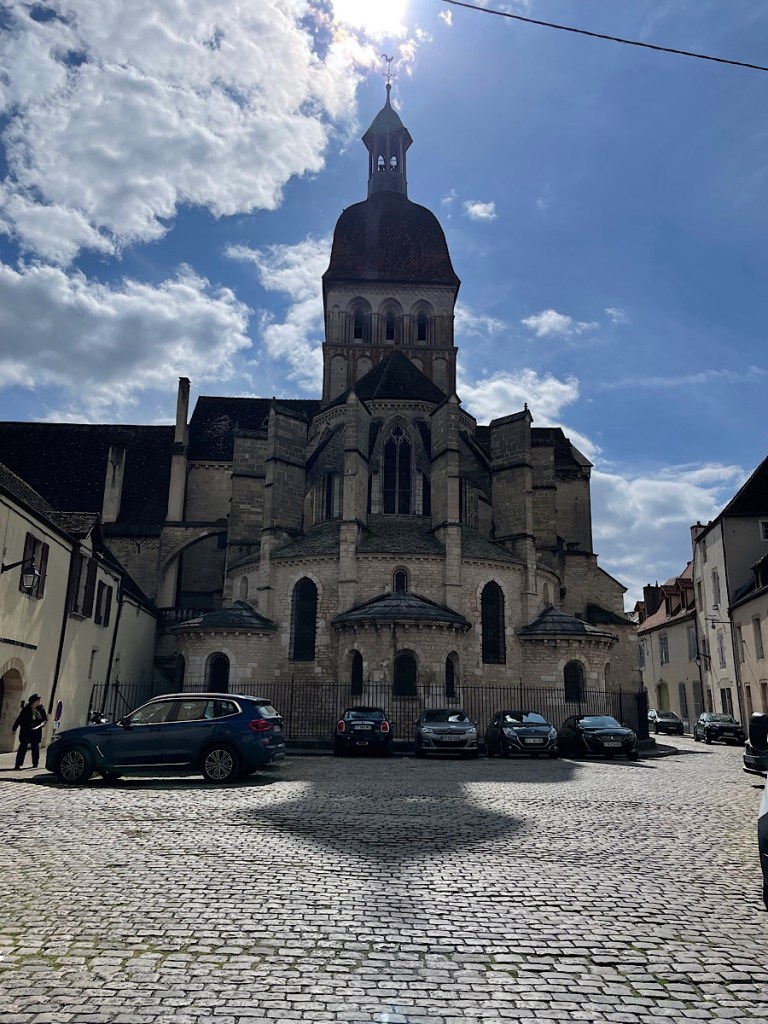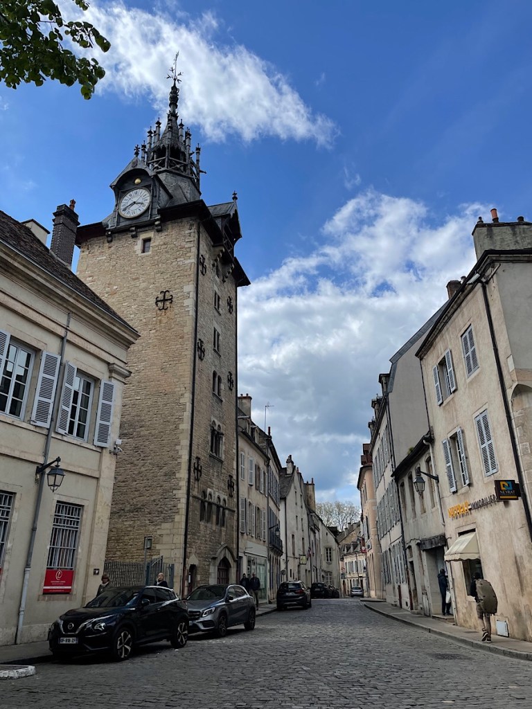 Beaune is a really pretty little town (it’s name literally means beautiful in French) and we really enjoyed stretching our legs there after a long drive. After the cold and wet of Germany, the sun came out. The town is filled with the facilities and cellars of many of the local producers as has apparently has been the case since Roman times. Not since we visited Chablis have we seen such a concentration. We walked some of the ramparts which are a quite well preserved border to the vielle ville / old town. Beaune was added to the UNESCO World Heritage list in 2015 because of its historical significance in wine production and unique system of terroir (cultivation).