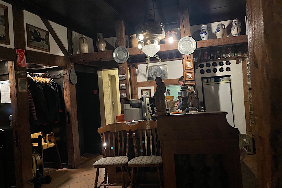 After a bit of a run of disappointments / accidents, we decided to console ourselves with a nice German beer at a beautifully preserved wood framed pub up the road with smiley welcoming hostess and pleasant midweek hum of activity. After a couple of beers even the bump on the back of my head from my rapid horizontal ladder descent, did not seem so bad.