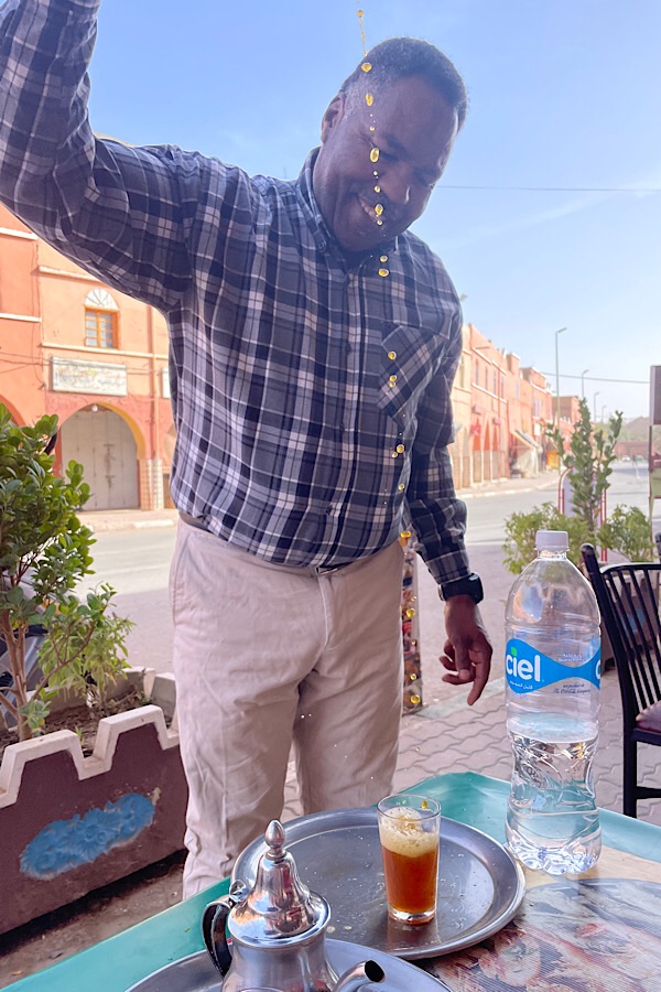 We found one of the few spaces remaining in the campsite, which turned out to be next to Steph and Katharin from @ausfahrt4x4. We said our hellos to them and exchanged a few stories of our separate desert crossings before getting on with the job of a complete service of the vans, stripping beds, laundry etc. We also popped into town for another tagine, to add to our countrywide tasting tour. The smiling friendly owner also decided to teach us how to pour mint tea properly – add sugar into the pot (it’s very bitter without), then pour into the glass, then from the glass back into the pot about three times to stir, each time pouring from the pot at a suitable height to aerate the tea.