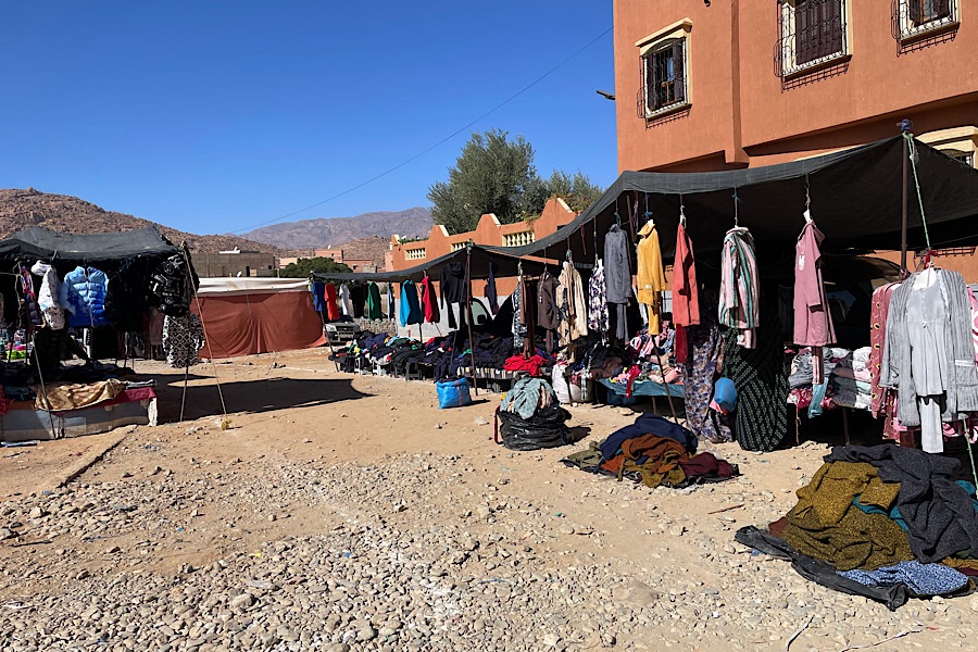 We’d thought of staying a couple of days, but that turned into 4 days. The weather was glorious, in the mid twenties Celsius (cooler as we were at 1000m altitude) with clear blue skies. We got to visit the Wednesday souk (market), complete with fruit, vegetables, local honey, spices, nuts, fresh herbs, pots, pans, clothes as well as chicks, hens, goats and sheep, even a couple of very unhappy looking mallard ducks.