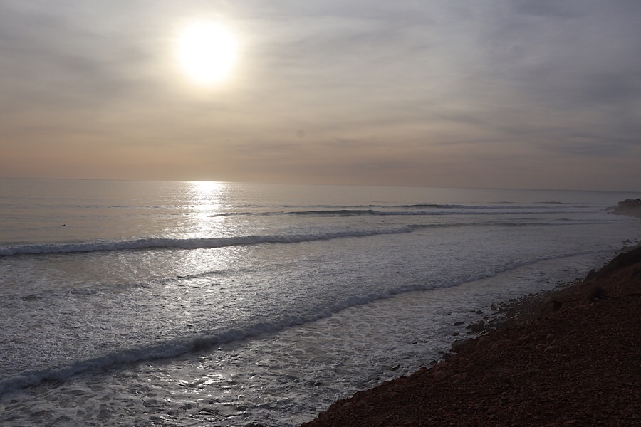 We pushed on to the coast and got our first glimpse of the Atlantic coast line as we left Agadir, now on our final leg north of our circumnavigation of Morocco. We’d chosen a campsite as we hate being moved on when we are camped up in the evening and all reports are that the police patrol the coastal areas frequently in the evening to do just that. However, we could see from the gates that the campsite was crammed full and decided to go back to some rough ground near a police checkpoint which seemed to be full of vans.